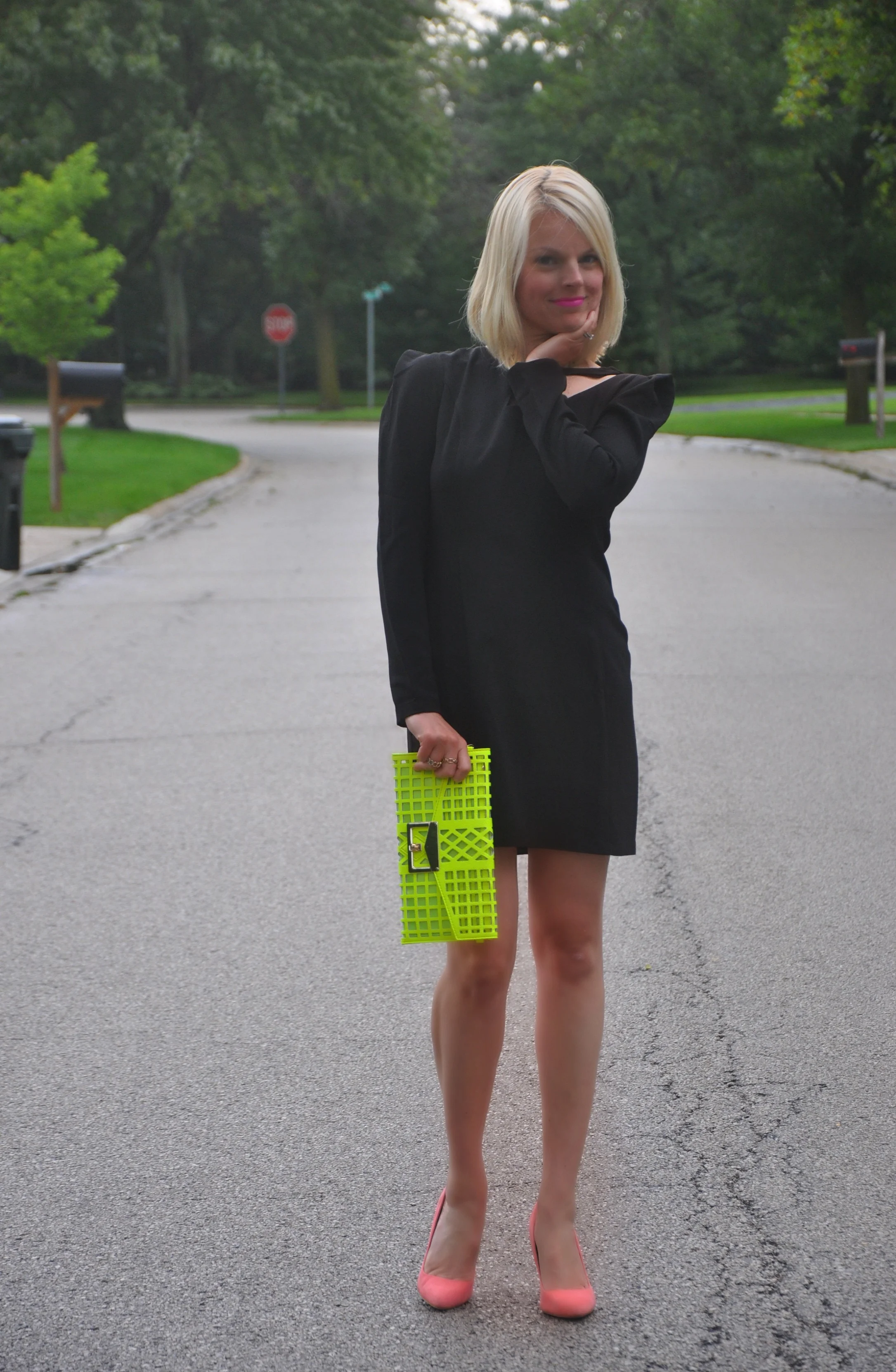Naturally if I am going to sport a neon clutch and heels...I'm not gonna just stop there. Hello rockstar earrings! I mean, go big or go home, right?!