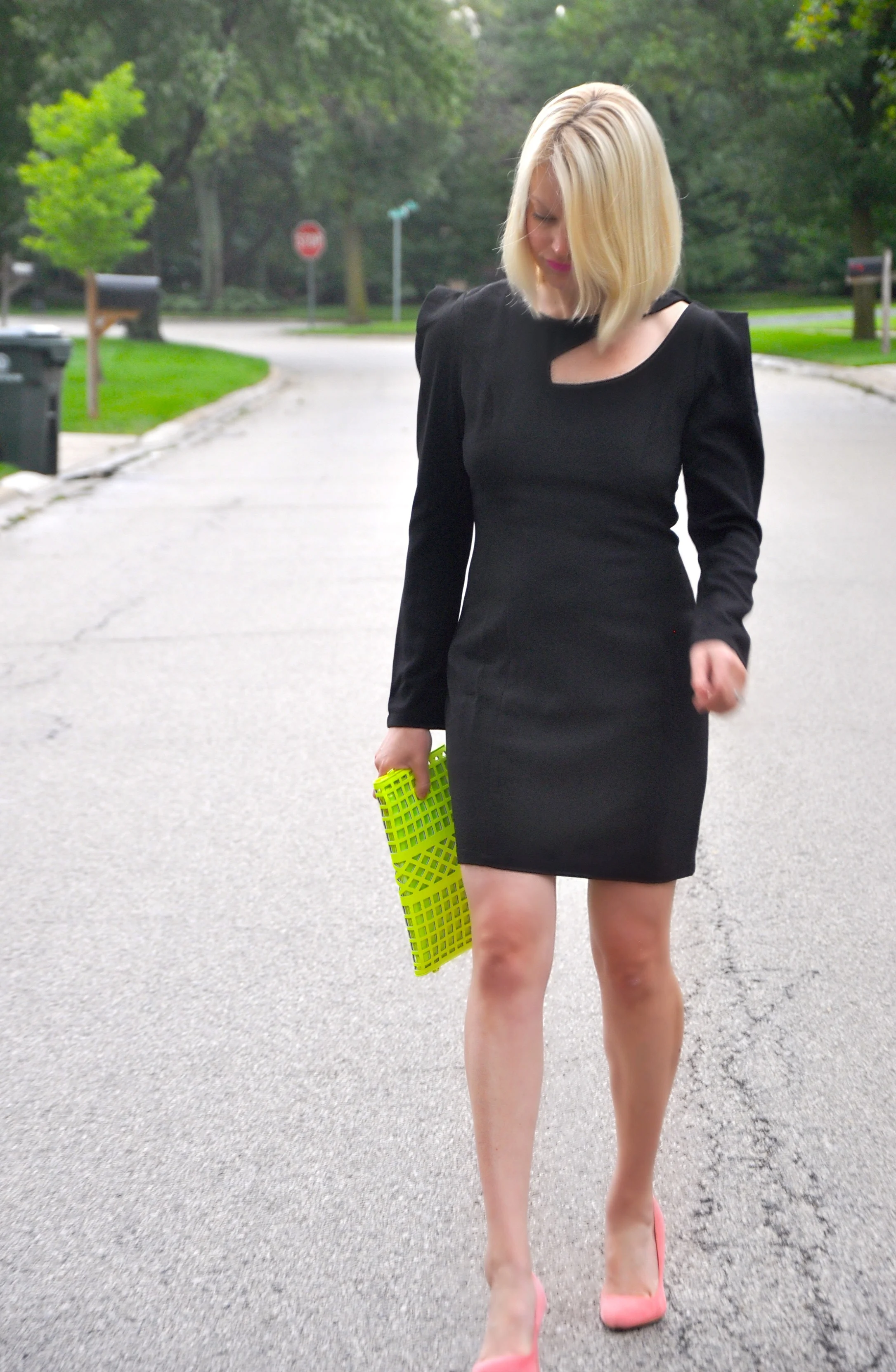 c/o OASAP Cutout Dress | c/o Fashionably Excessive Triangle Drop Earrings | c/o Fashionably Execessive Neon Clutch | c/o ShopLately Knots & Braids Ring Set | Forever 21 Coral Pumps