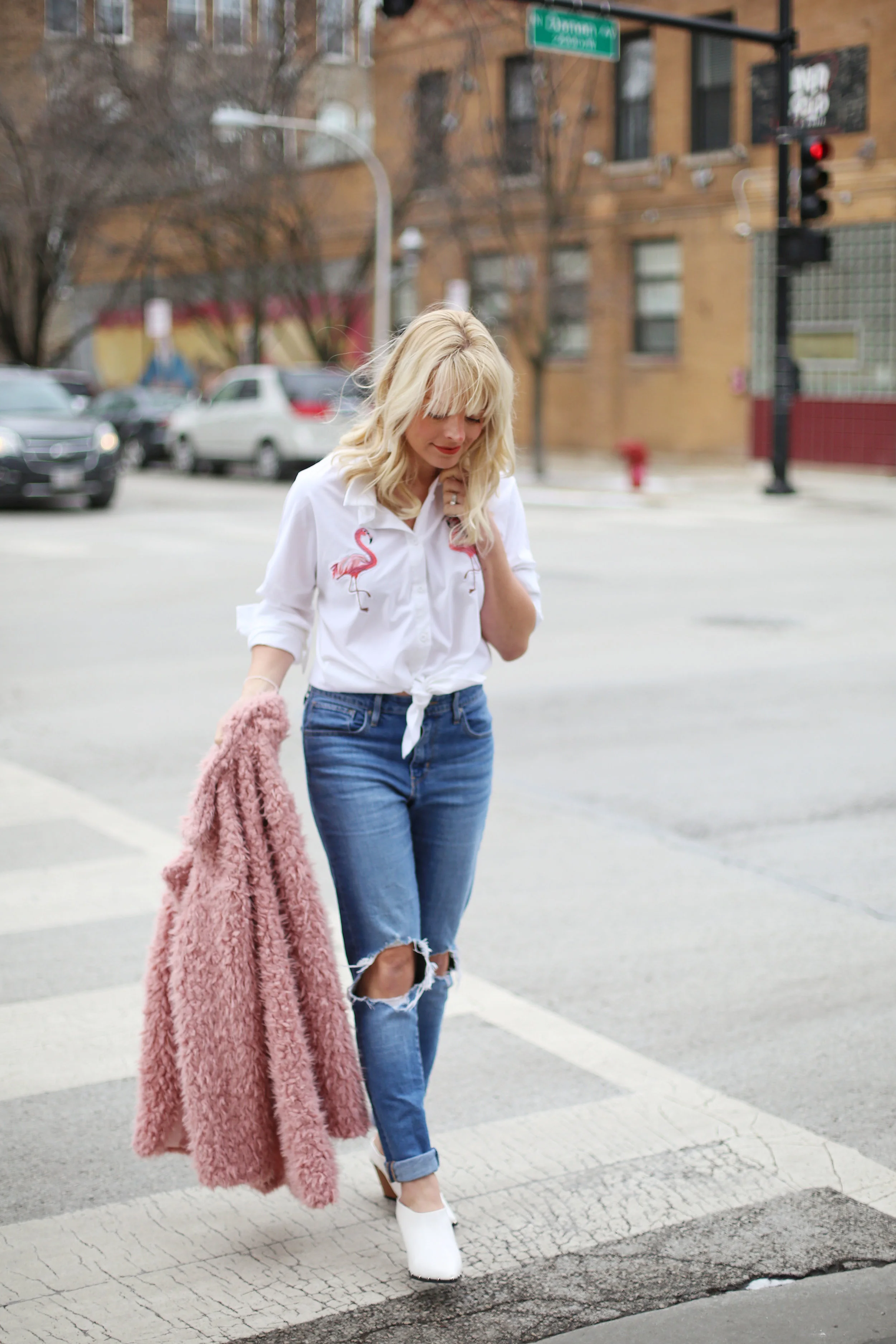 I've linked my favorite denim, mules and my flamingo top as well below. Don't forget the earrings because the price is too good. And, the best part...you can find them at Target! All in all, this week is shaping up just lovely and we're almost half way there. Stay warm my friends!