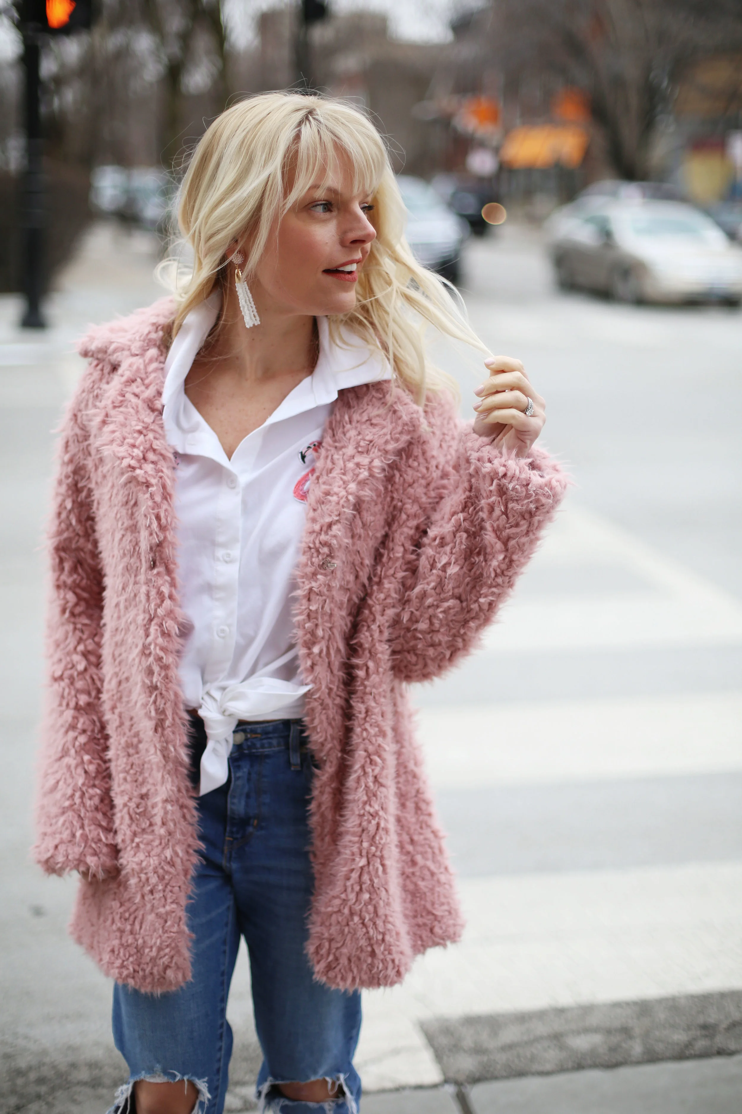 On another note, I have fallen hard for the teddy coat trend. What's not to love? It's like wearing a big hug. Some people are not jumping on but I am all in. I can't tell you how much I wear this coat not to mention the soft blush is exactly on brand for me these days. Total win!