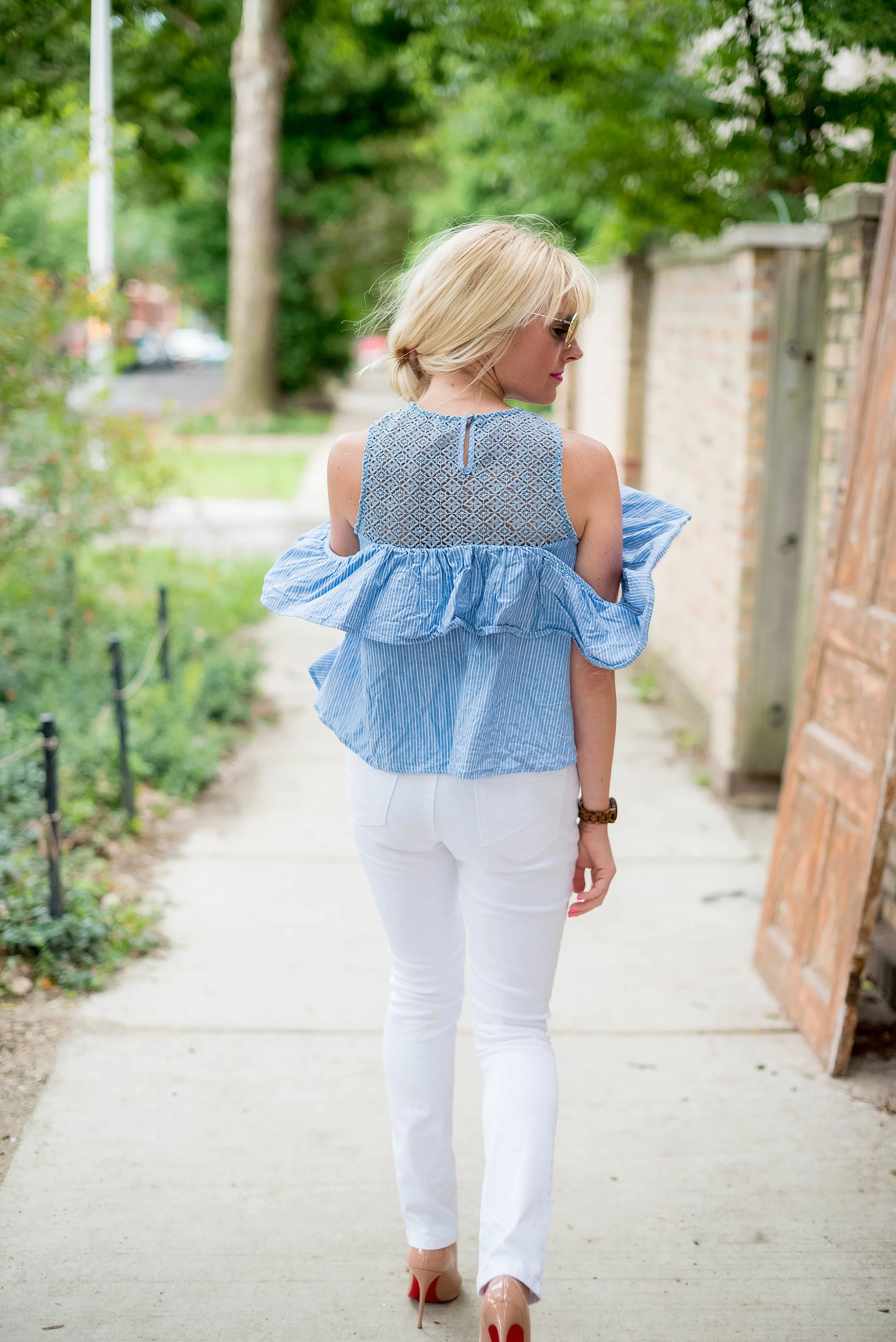 Gotta love a top with built in ventilation and feminine details. It looks equally adorable with cut-offs, too.