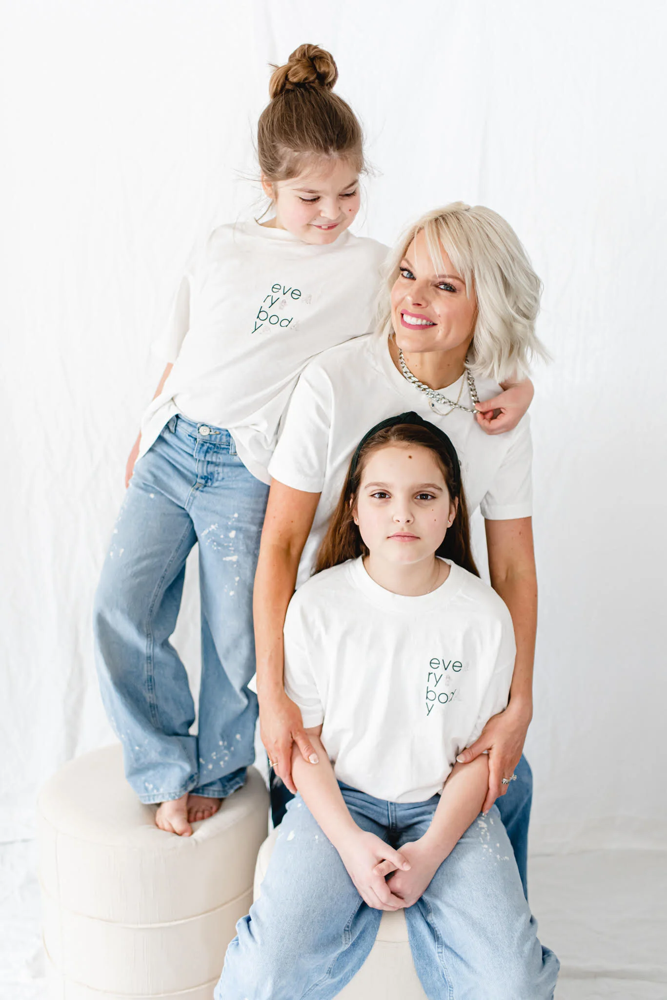 We have something special to share, too. The girls and I have been working on a body positivi-tee capsule to normalize normal bodies no matter what size, shape, gender or color. Meet Eve.ry.bod.y - we are officially live and available for purchase. And we believe that all bodies are good bodies. We are here for you, we celebrate you and we love being fierce females.