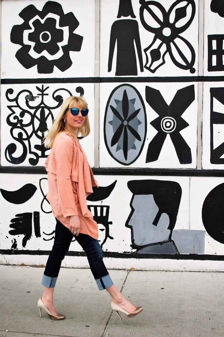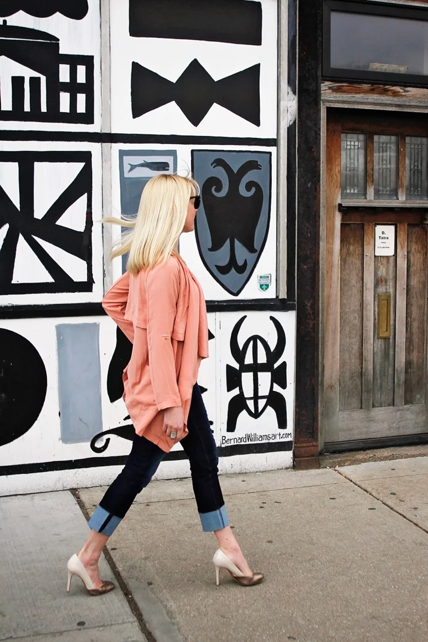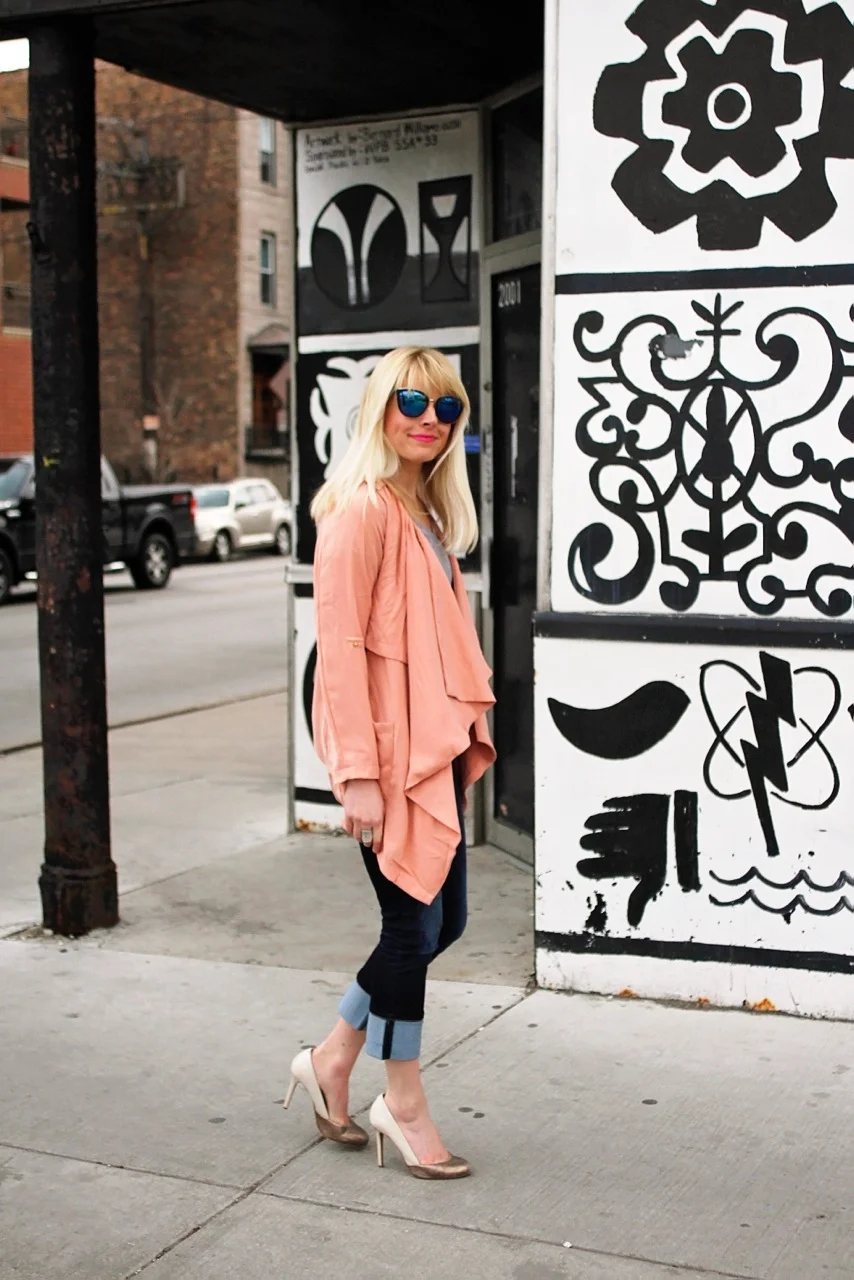This waterfall jacket is the perfect lightweight layer for this time of year. A splash of color turning the most ordinary outfit into something a bit more polished. The soft, feminine layers dress up my basic denim and tee instantly.