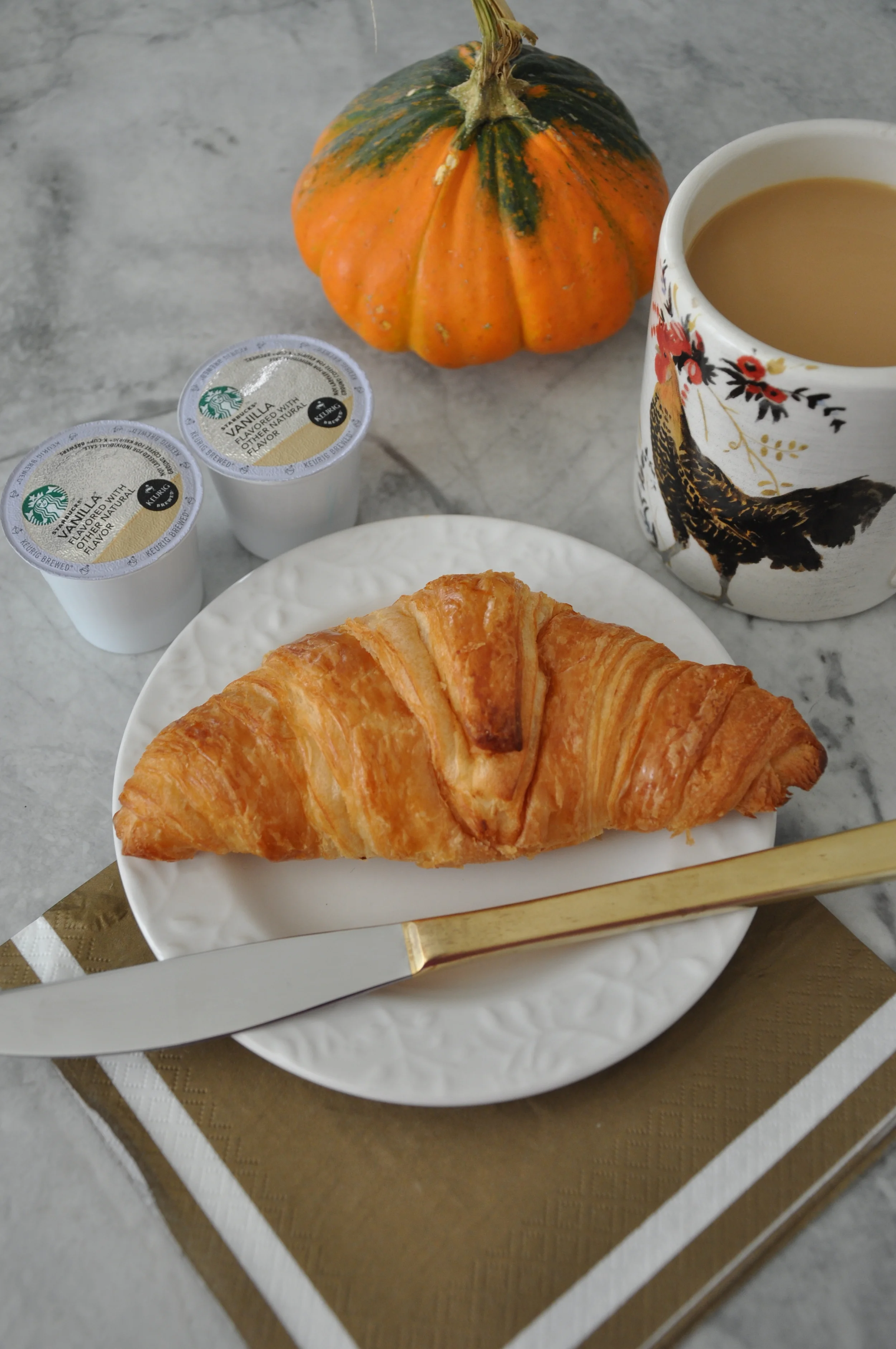 Luckily for me, I can set my alarm for 5:30am and sneak in a work out followed (rather quickly) by brewing my favorite Starbucks® Vanilla K-Cup® Packs. In my opinion, nothing pairs better with a Vanilla flavored K-Cup® than a fresh croissant. It's fall coziness on a plate.