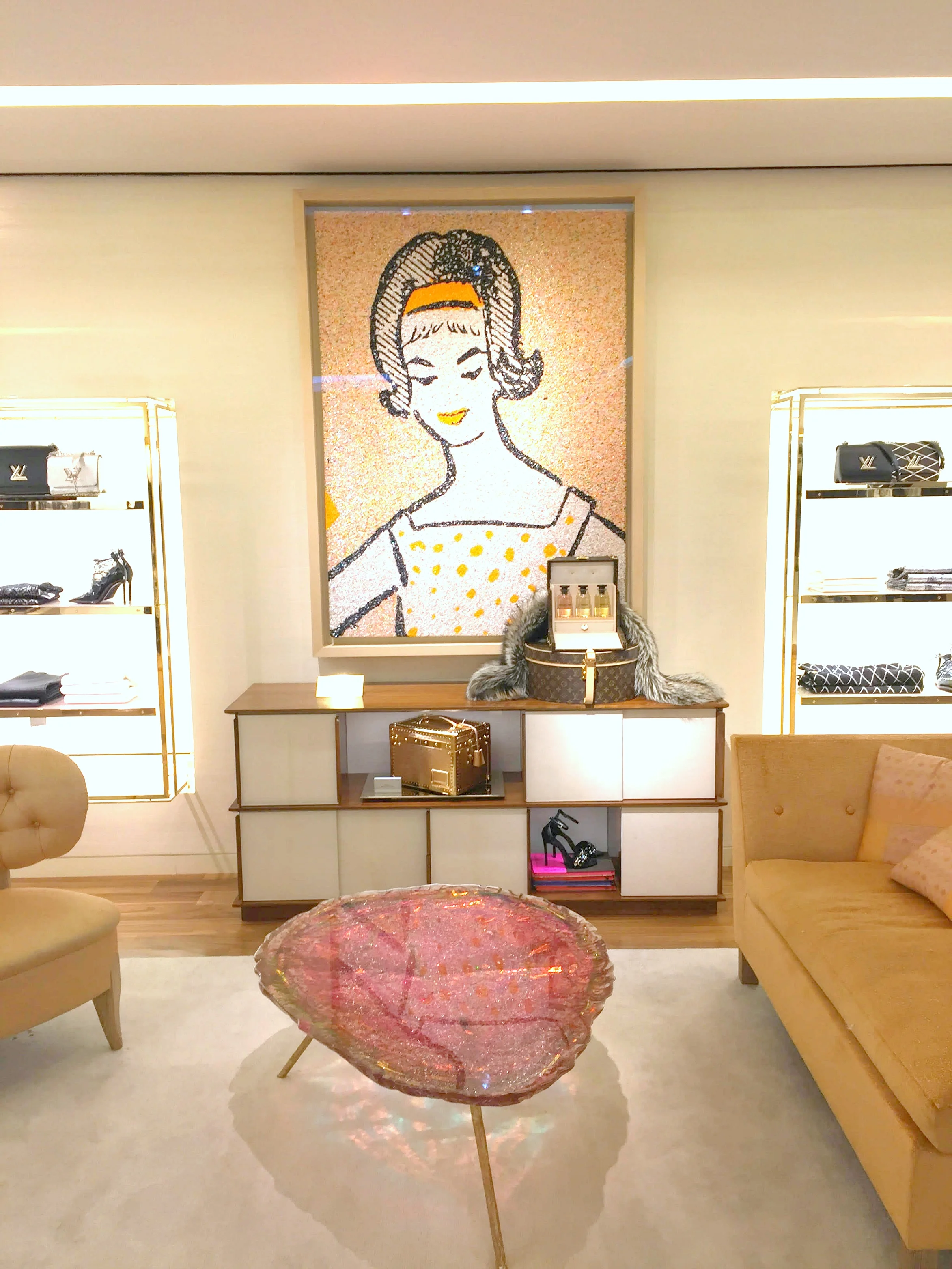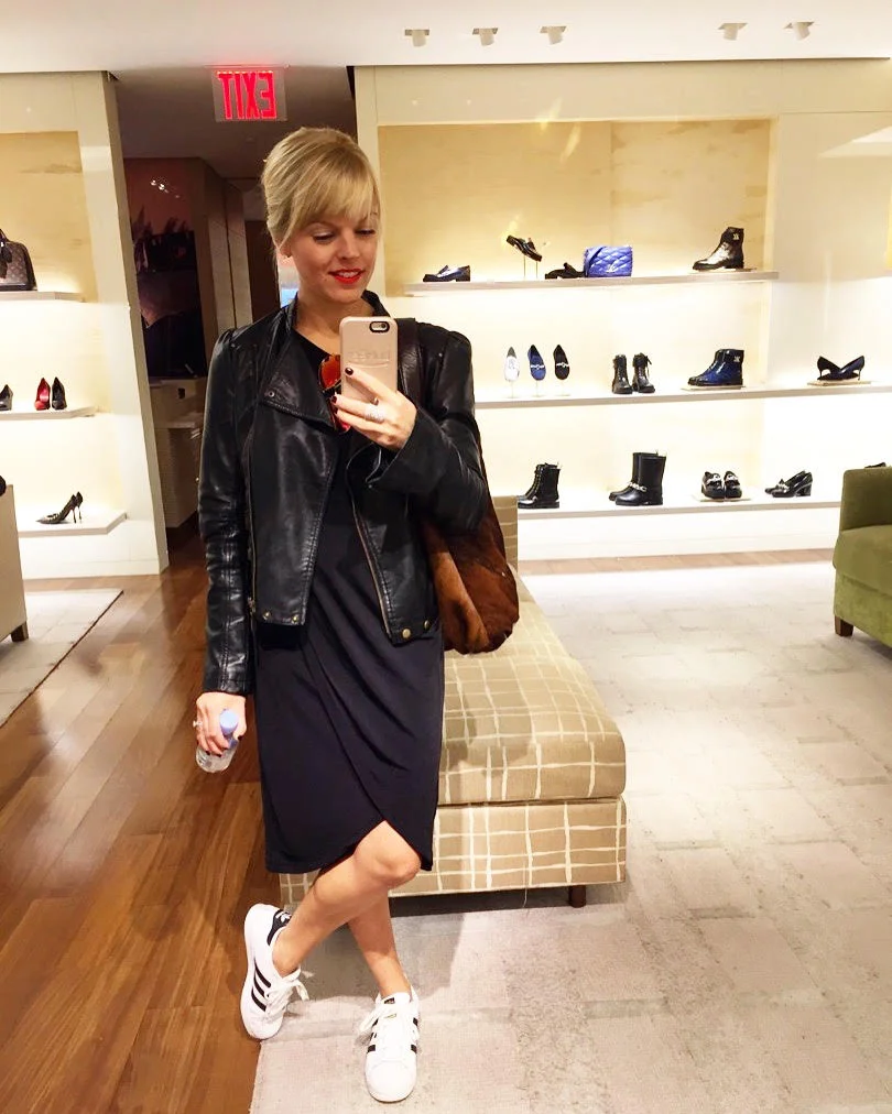I kept it casual on Day 2 with the basic, New York uniform: black. I was super comfortable and my feet never hurt considering all the walking we did. This was inside the Louis Vuitton store...which was stunning. I snapped selfies while my friend, Marcy, snagged the most dynamite pair of boots. I'm pretty sure we entertained the staff as well.