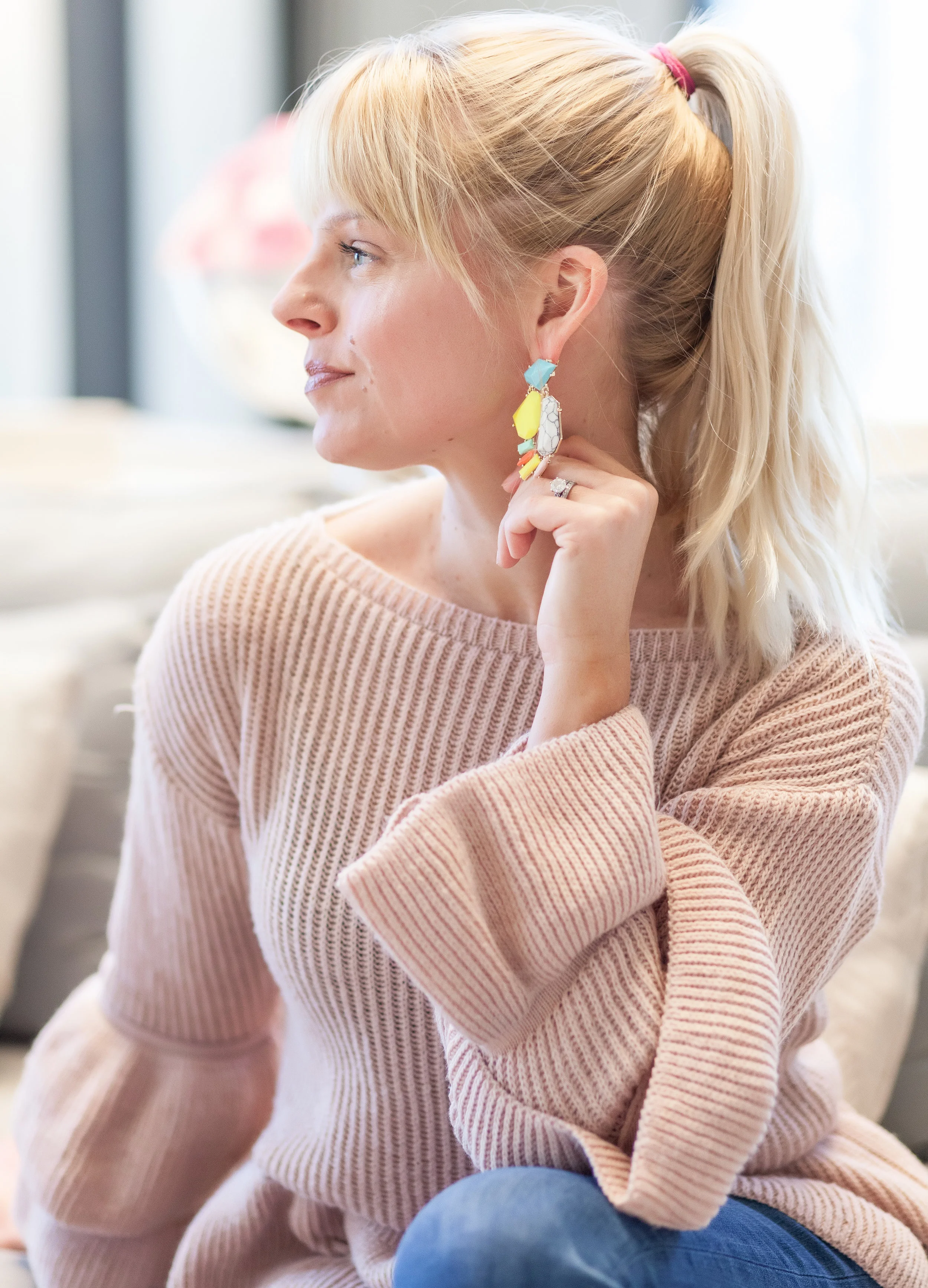 I've linked these statement earrings below for your shopping pleasure. A little unexpected and the perfect pop of color. Surprisingly, they are not heavy on my ears either.