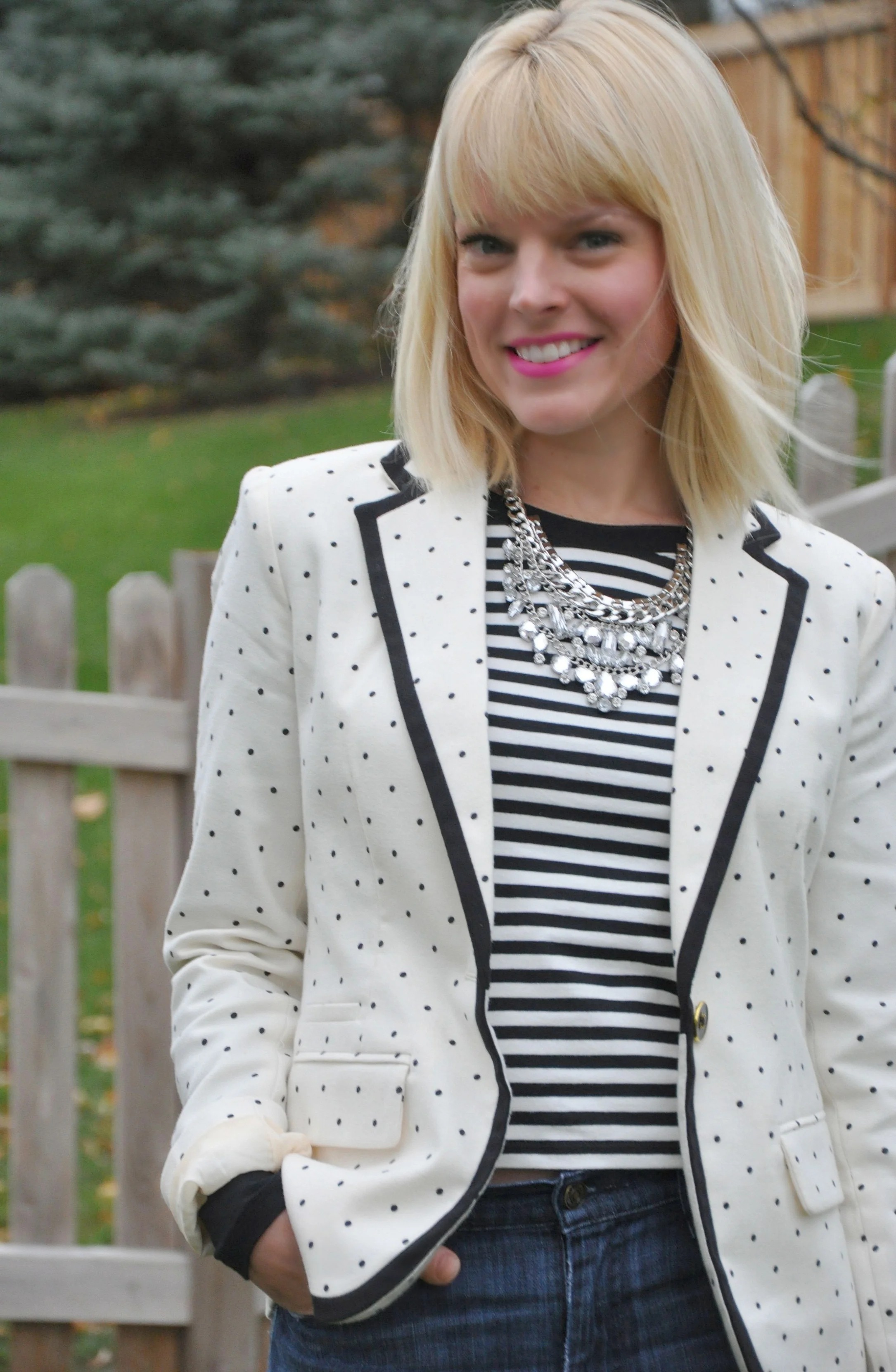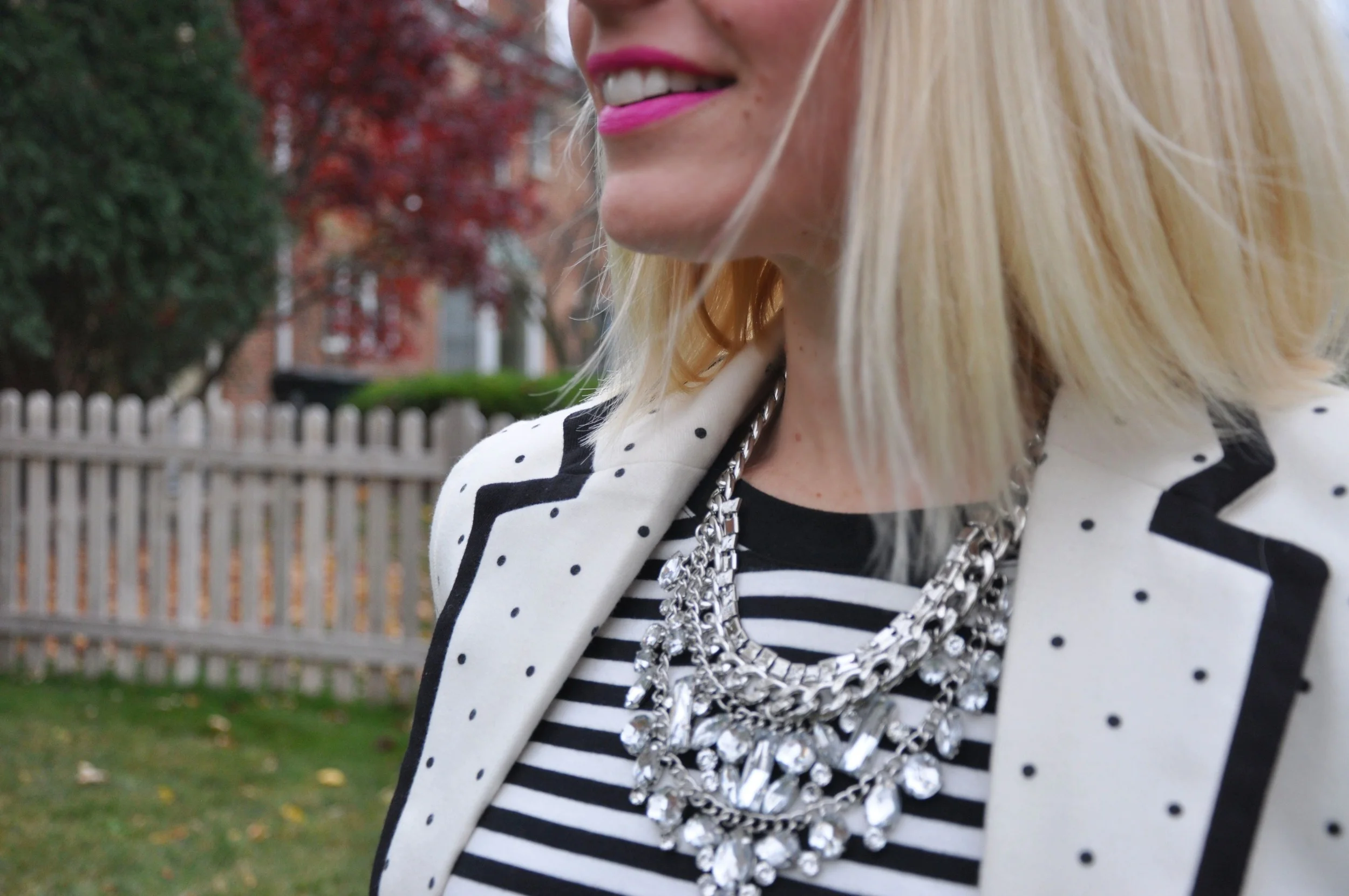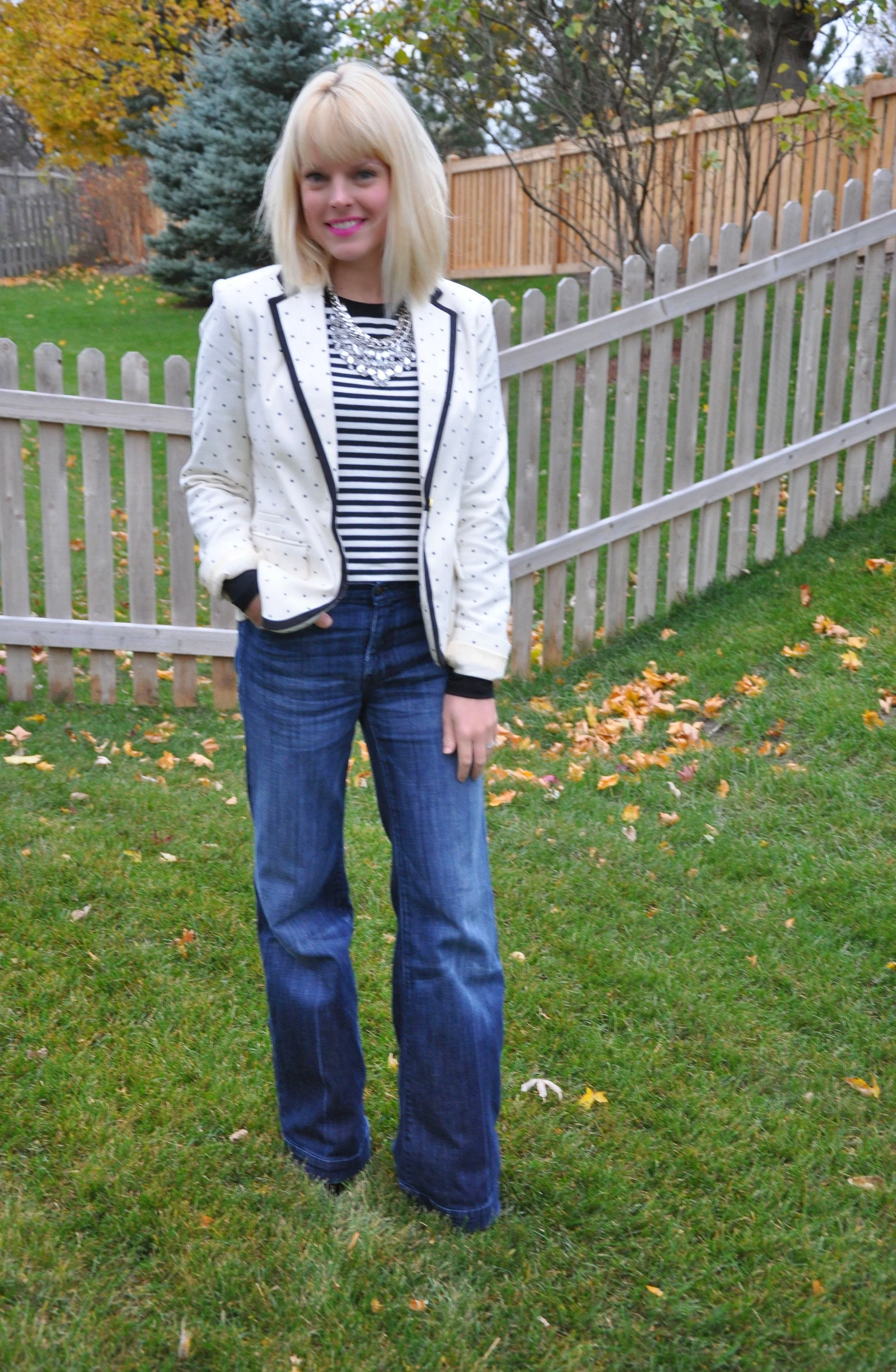 Merona Blazer | Forever 21 Striped Tee | Citizen Trouser Denim | c/o ShopLately Necklace | Forever 21 Black Pumps