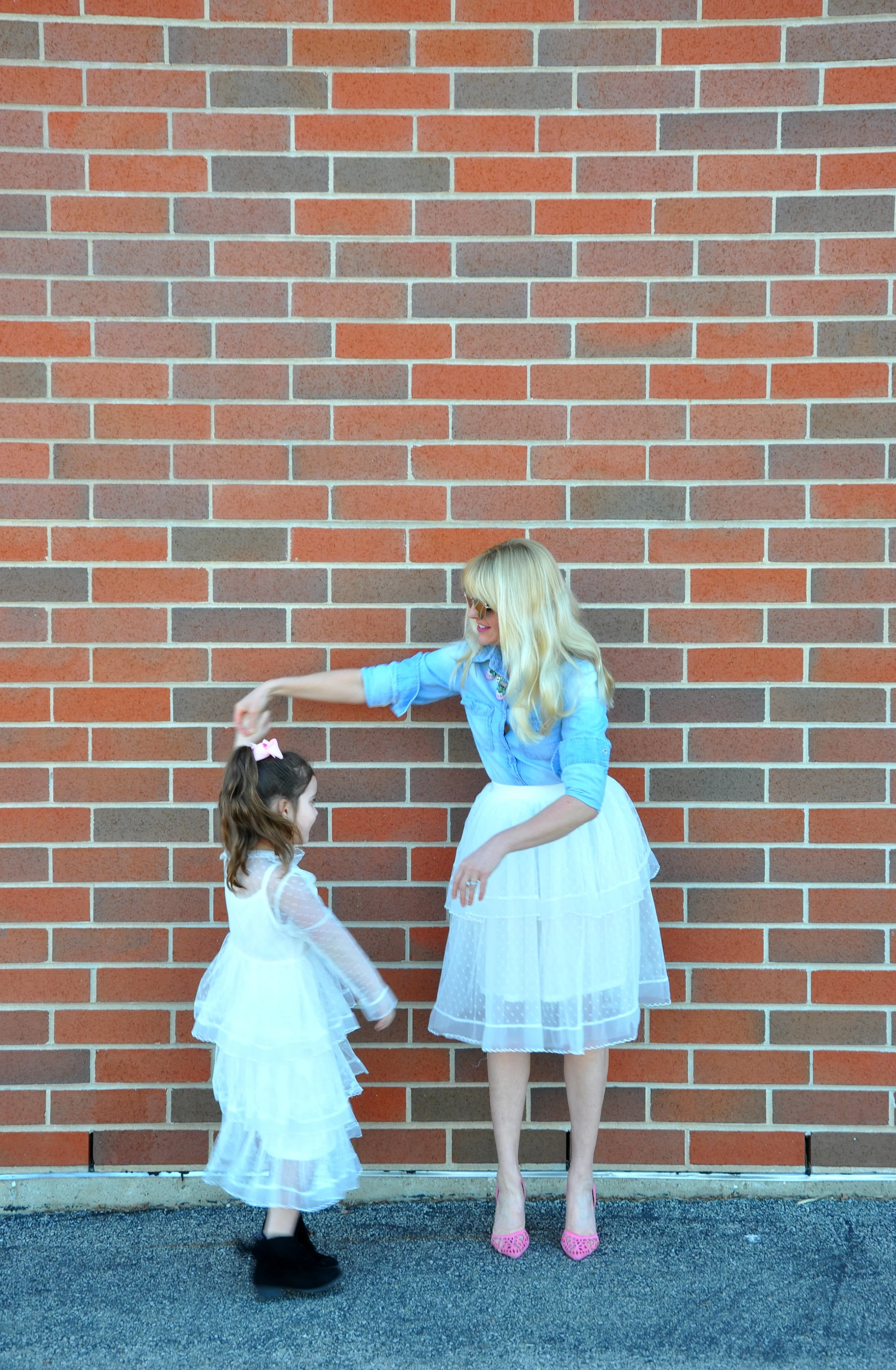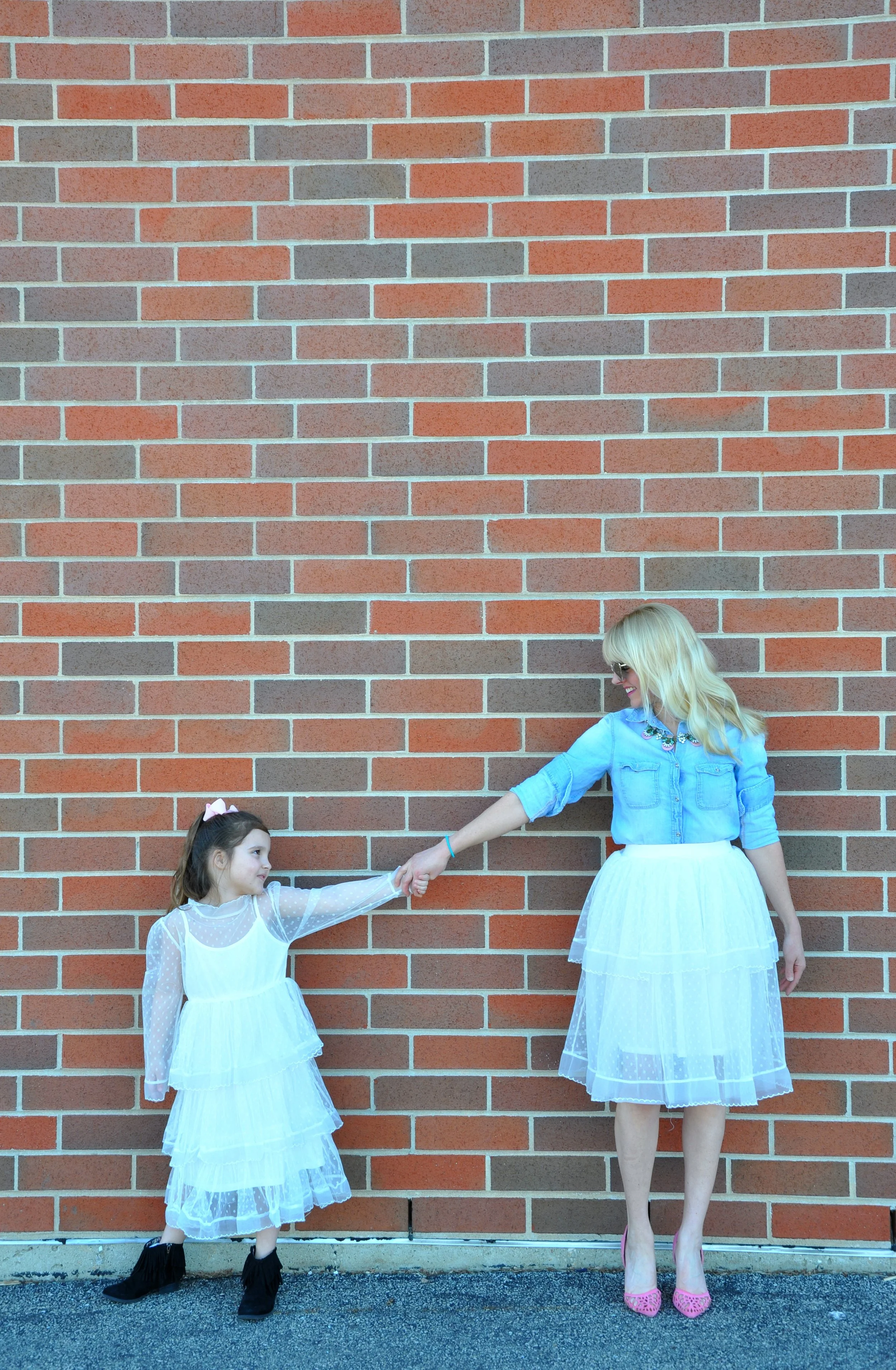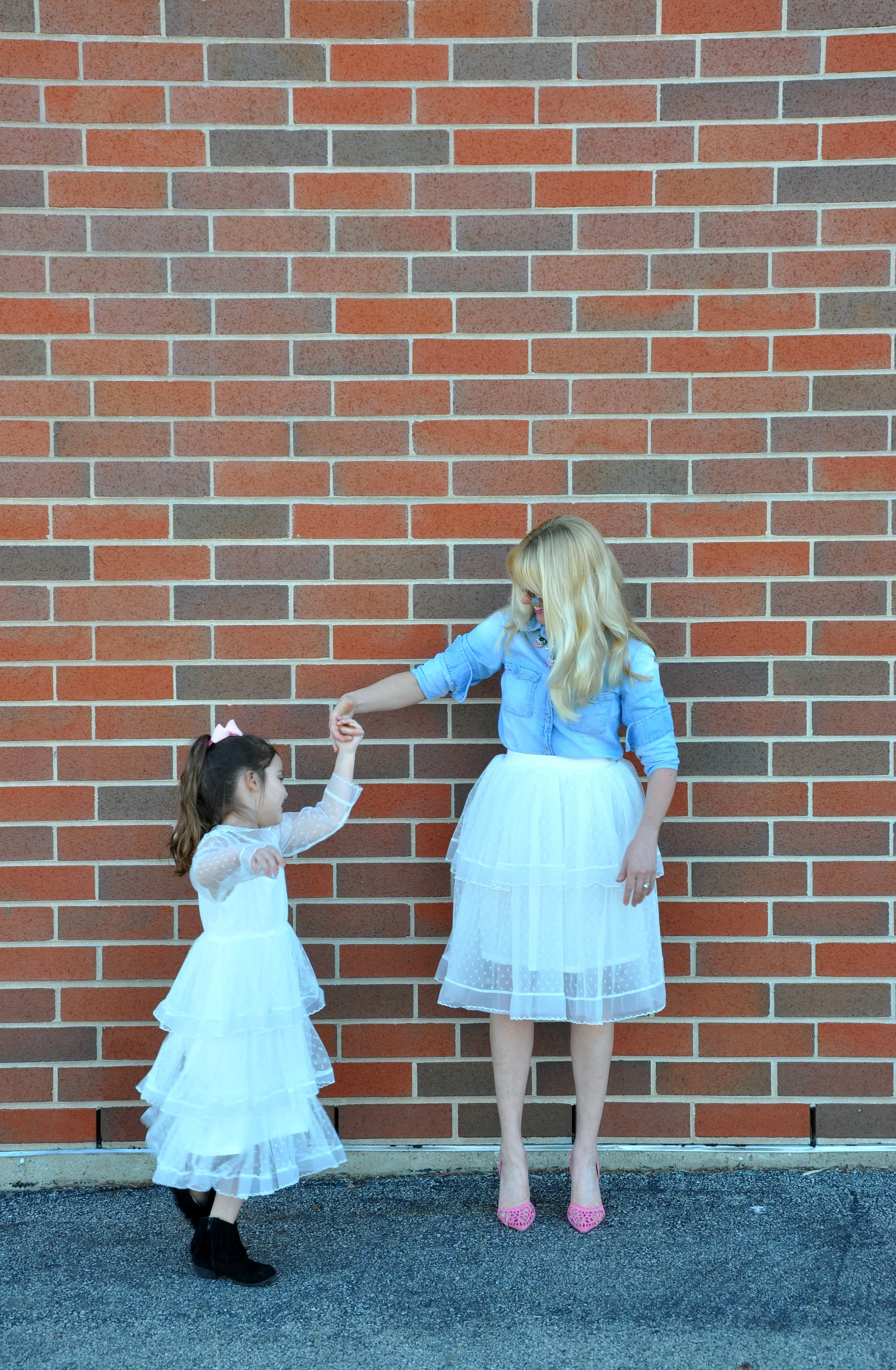 Today's post is dedicated to my sweet girl. We partnered with Moderne Child and created a mother/daughter look for Spring. I have to admit that I love the way it turned out. Olivia is so delicate and I think this dress suits her perfectly. She's wearing a size 7 but I think she could go down a size. I'm wearing a medium tulle skirt and it was incredibly comfortable. Dressing up never felt so good. …and doing it with your daughter is the most fun of all! There are just about a zillion ways you could style these two pieces but we opted for a contemporary look. I'd also pair them with ballet flats and striped tees for a different take all together.